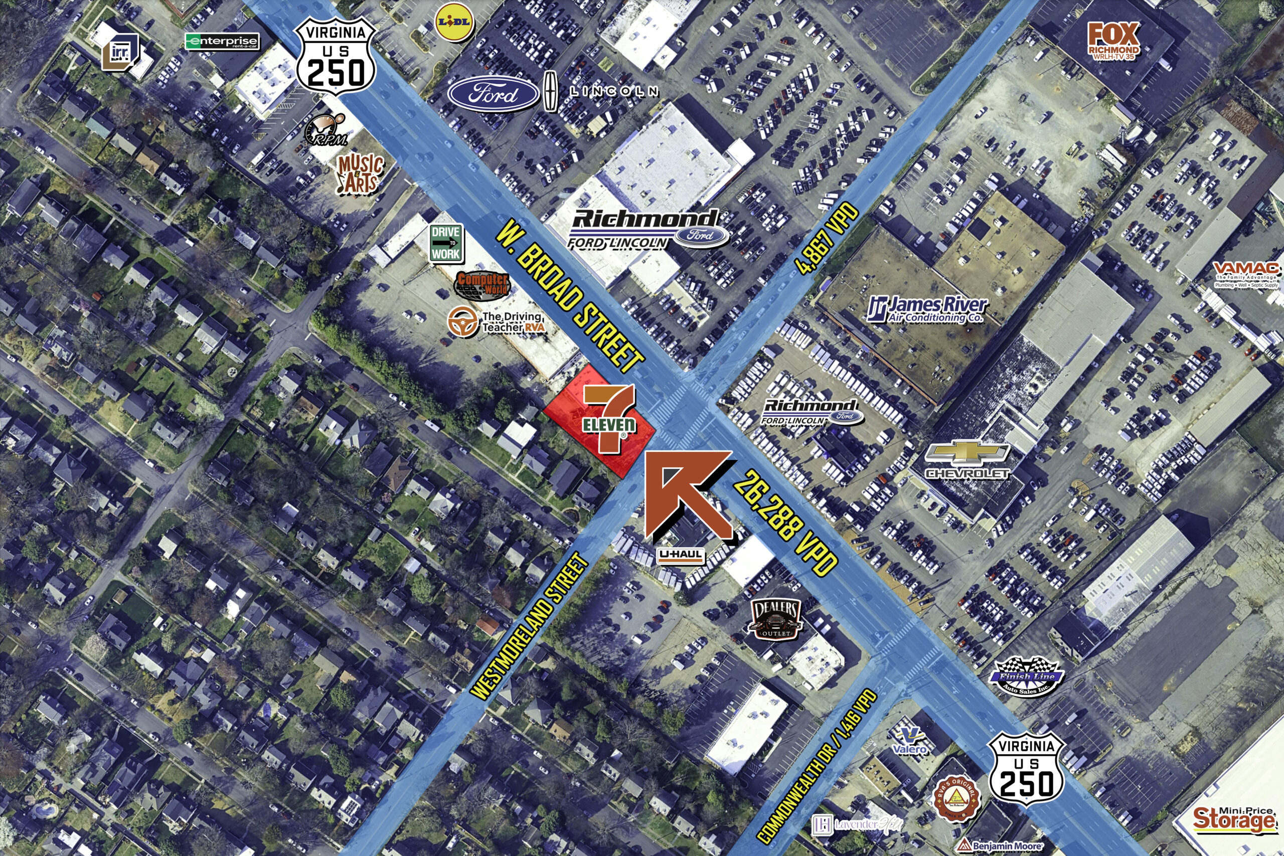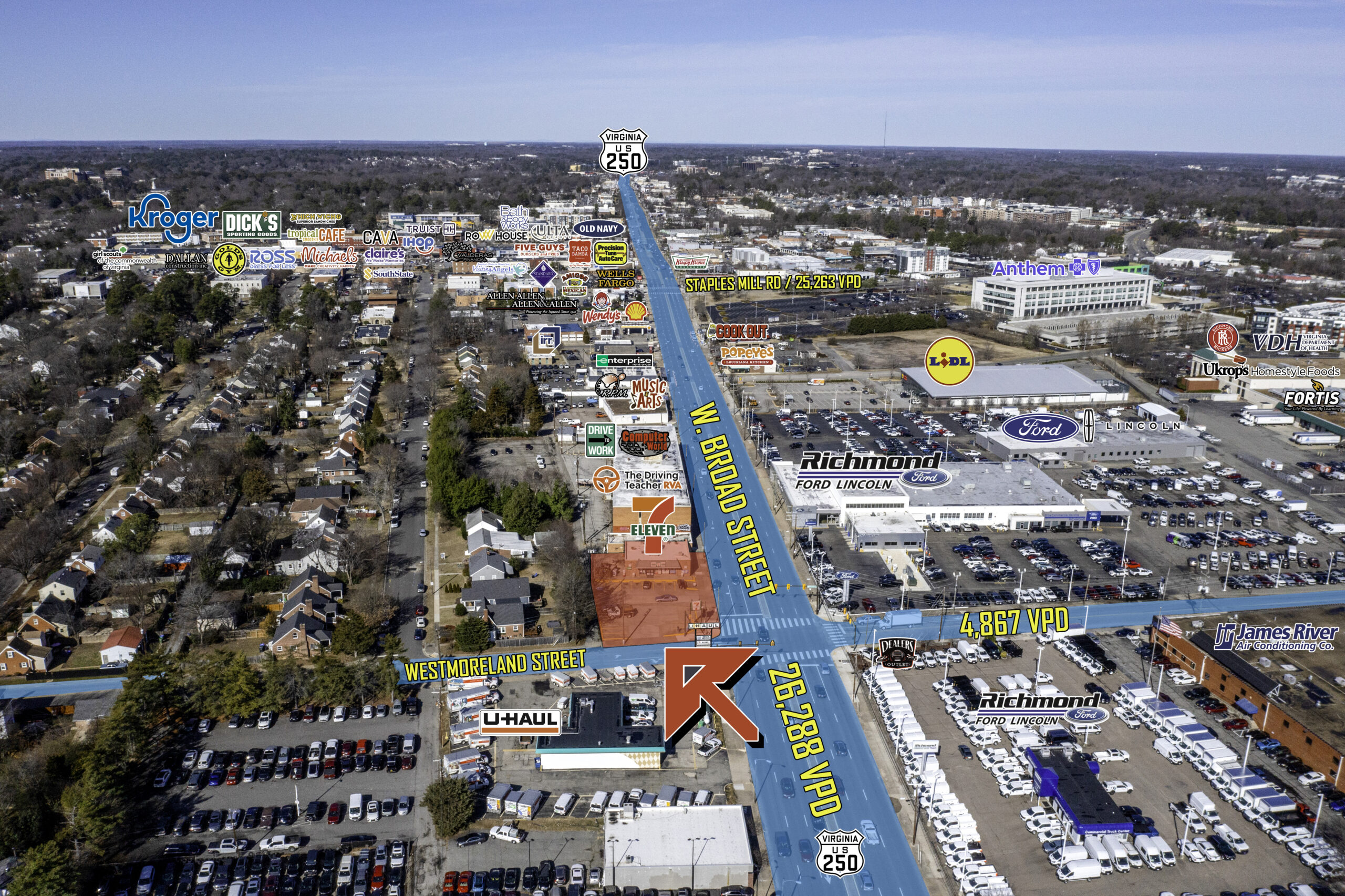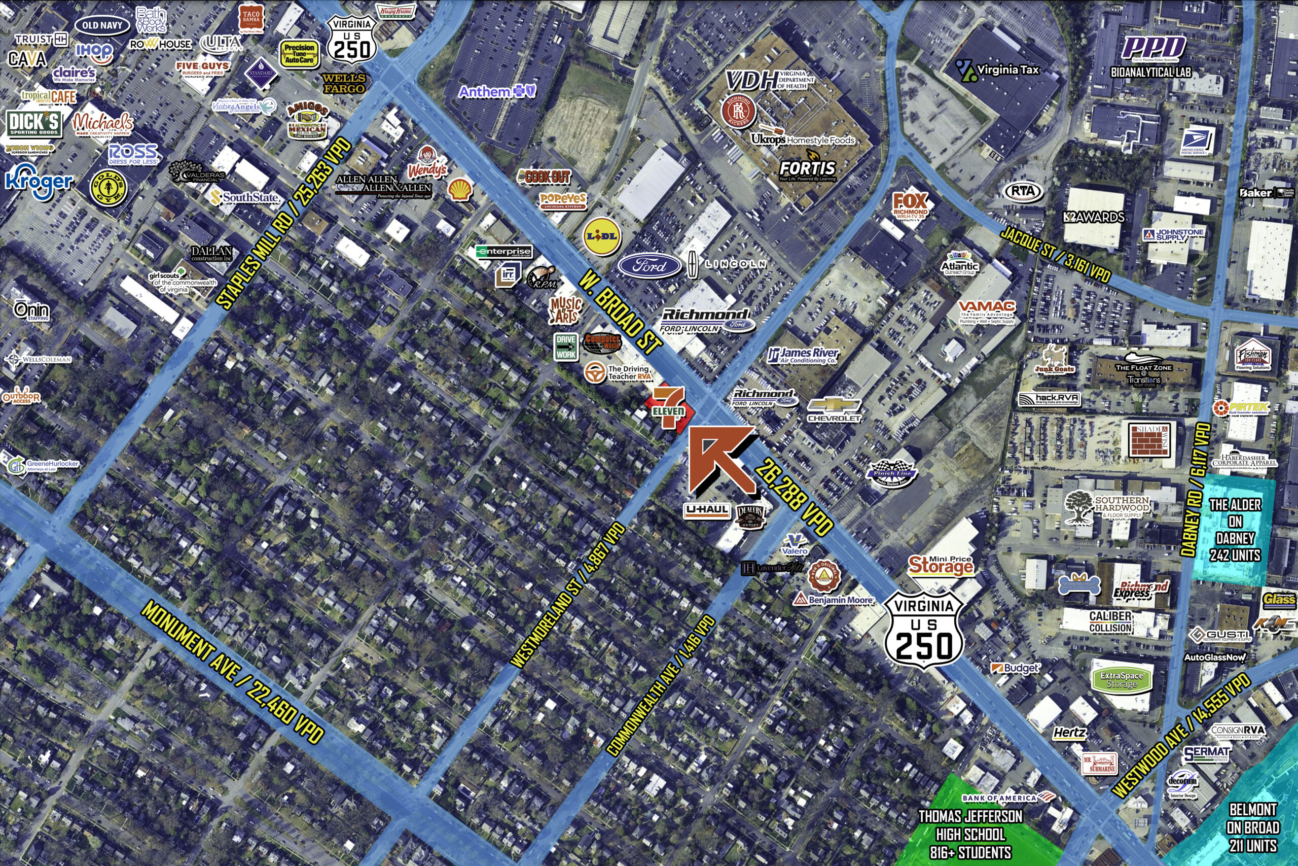 - High Traffic Location with Excellent Visibility at a Signalized Intersection – More Than 26,000 Vehicles Per Day on W. Broad St (VA-250) & Over 25,000 Vehicles Per Day on Nearby Staples Mill Rd