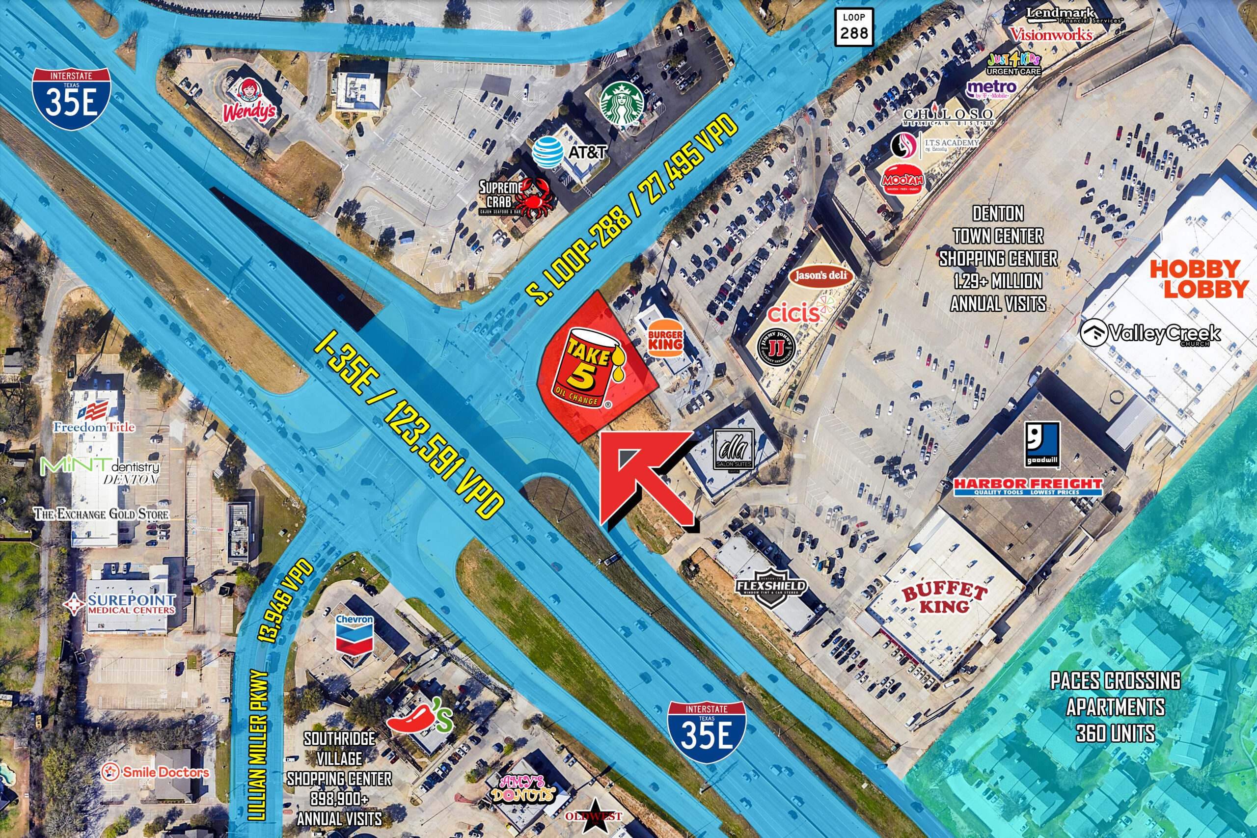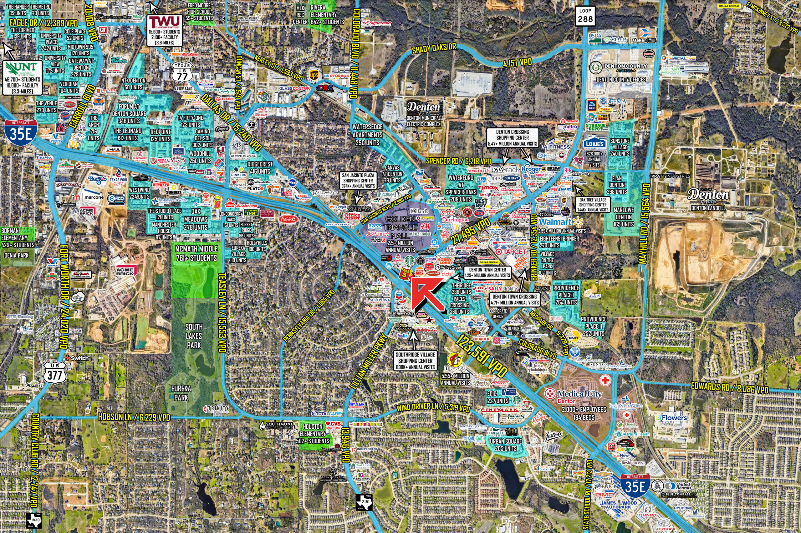 - Strategically Positioned Near the Denton Town Crossing, Denton Towne Center, Southridge Village & Denton Crossing Shopping Centers That Bring Daily-Needs Consumers Directly to the Trade Area – More Than 12.3 Million Combined Visits to the Centers Over the Prior Calendar Year